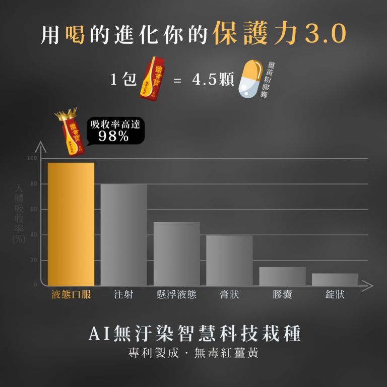 2. 專利製程 好收吸:專利醱酵技術 萃取高濃度薑黃素原液 讓分子更小更好吸收
